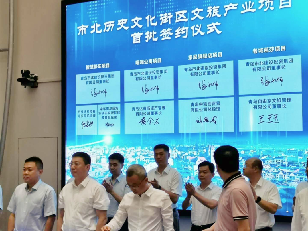 8月6日,青島市市北區(qū)歷史文化街區(qū)招商項(xiàng)目簽約儀式上,中車八維通智慧停車項(xiàng)目作為首批8家重點(diǎn)項(xiàng)目順利簽約。八維通科技有限公司董事長(zhǎng)陳凱,八維通黨委書記、常務(wù)副總經(jīng)理?xiàng)詈?..