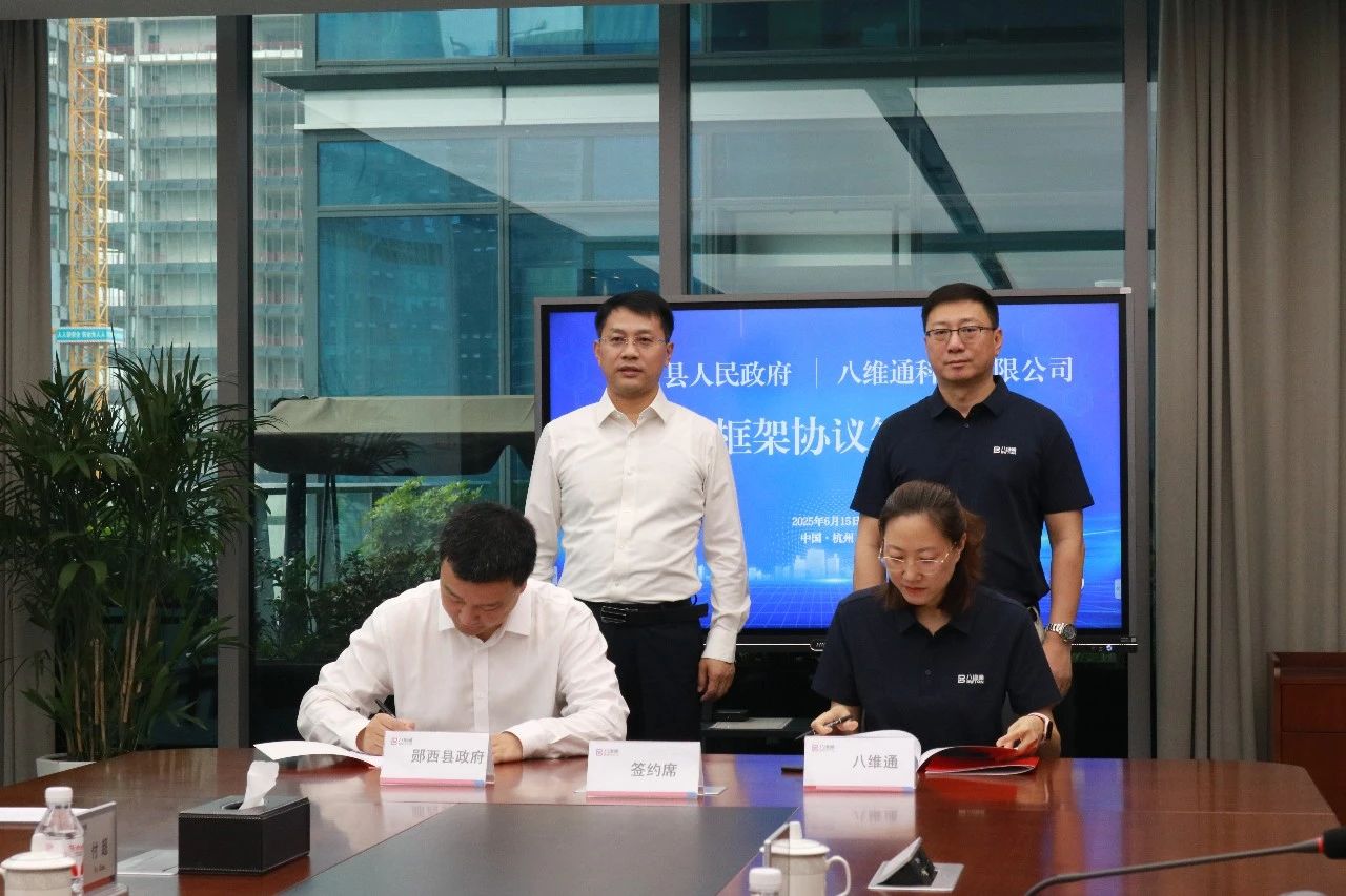 6月15日 ,鄖西縣人民政府與八維通科技有限公司(以下簡稱“八維通”)在杭州正式簽署《關(guān)于建設(shè)“數(shù)智鄖西”全域數(shù)字化轉(zhuǎn)型戰(zhàn)略框架協(xié)議》。鄖西縣委書記王兵、八維通董事長楊宏旭出席簽約儀式并見證協(xié)議簽署,鄖西縣政府副縣長李杰與八維通總經(jīng)理余華瓊代表雙方簽約。