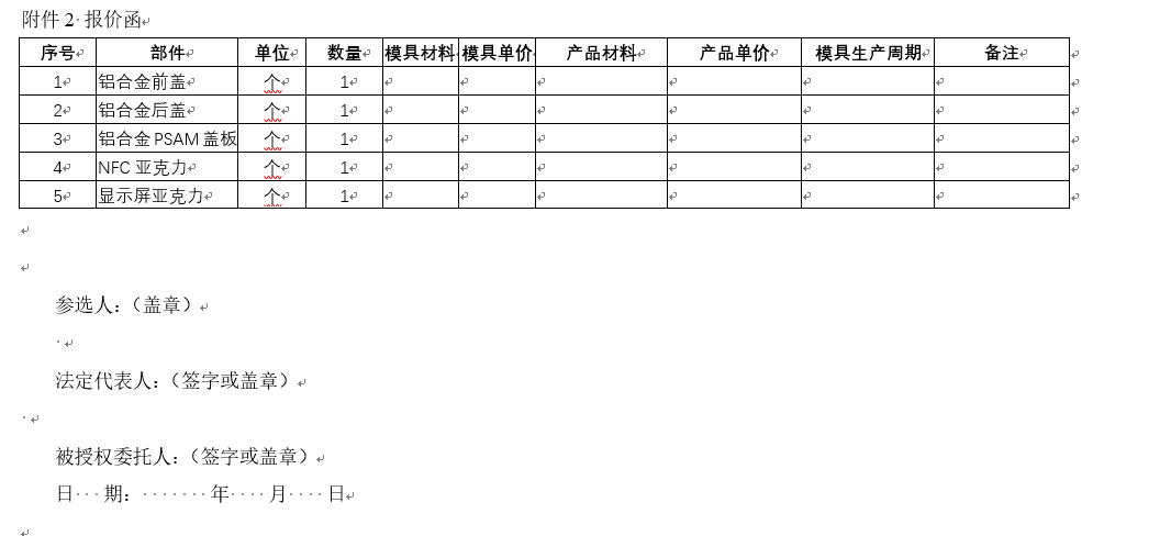 4.2參選人需以“附件2:報價函”的格式,按照“供貨清單”的要求進行報價,報價函的序號應(yīng)與貨物清單一致,如報價項與需求項有實質(zhì)性偏離的,則按缺漏項處理。