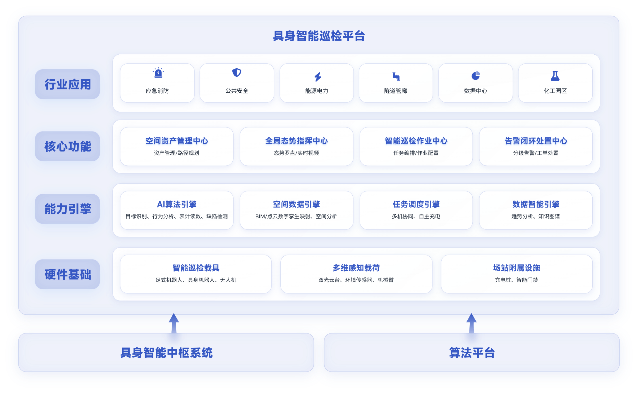 八維通具身智能巡檢平臺基于具身智能技術(shù),旨在實現(xiàn)7x24小時無人化自主巡檢,將人員從高危、繁復(fù)的現(xiàn)場環(huán)境中解放出來,構(gòu)建從任務(wù)自動編排、智能感知預(yù)警到工單閉環(huán)處置的數(shù)據(jù)驅(qū)動的預(yù)防性維護體系,全面提升資產(chǎn)安全與運營效能。
