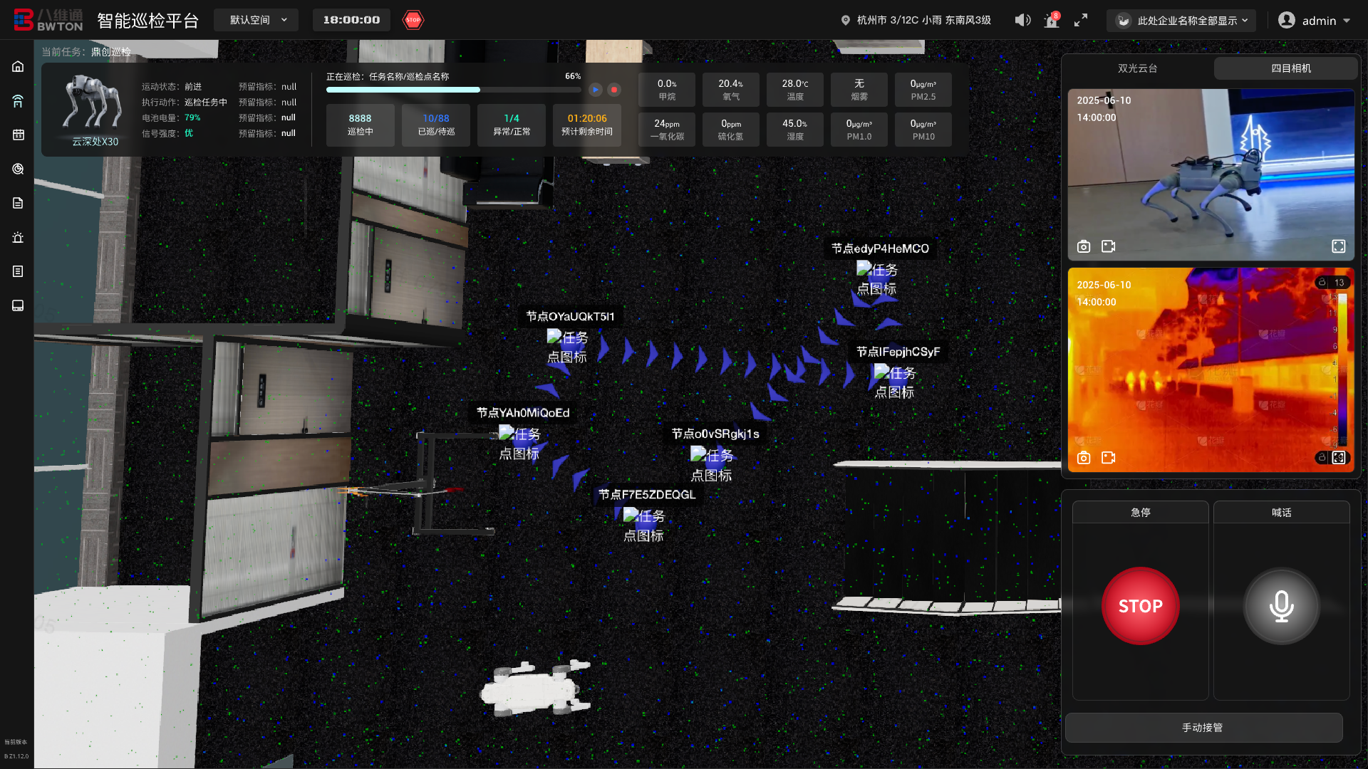 融合2D/3D多維空間模型,構(gòu)建高保真數(shù)字孿生場景。為任務(wù)的可視化編排、遠(yuǎn)程沉浸式遙控和數(shù)據(jù)空間化呈現(xiàn),提供統(tǒng)一的“數(shù)字沙盤”